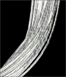 リキッド・シルバーは小さな銀のビーズからできている.水の流れのような輝きと滑らかな感触からこの名前がついた.